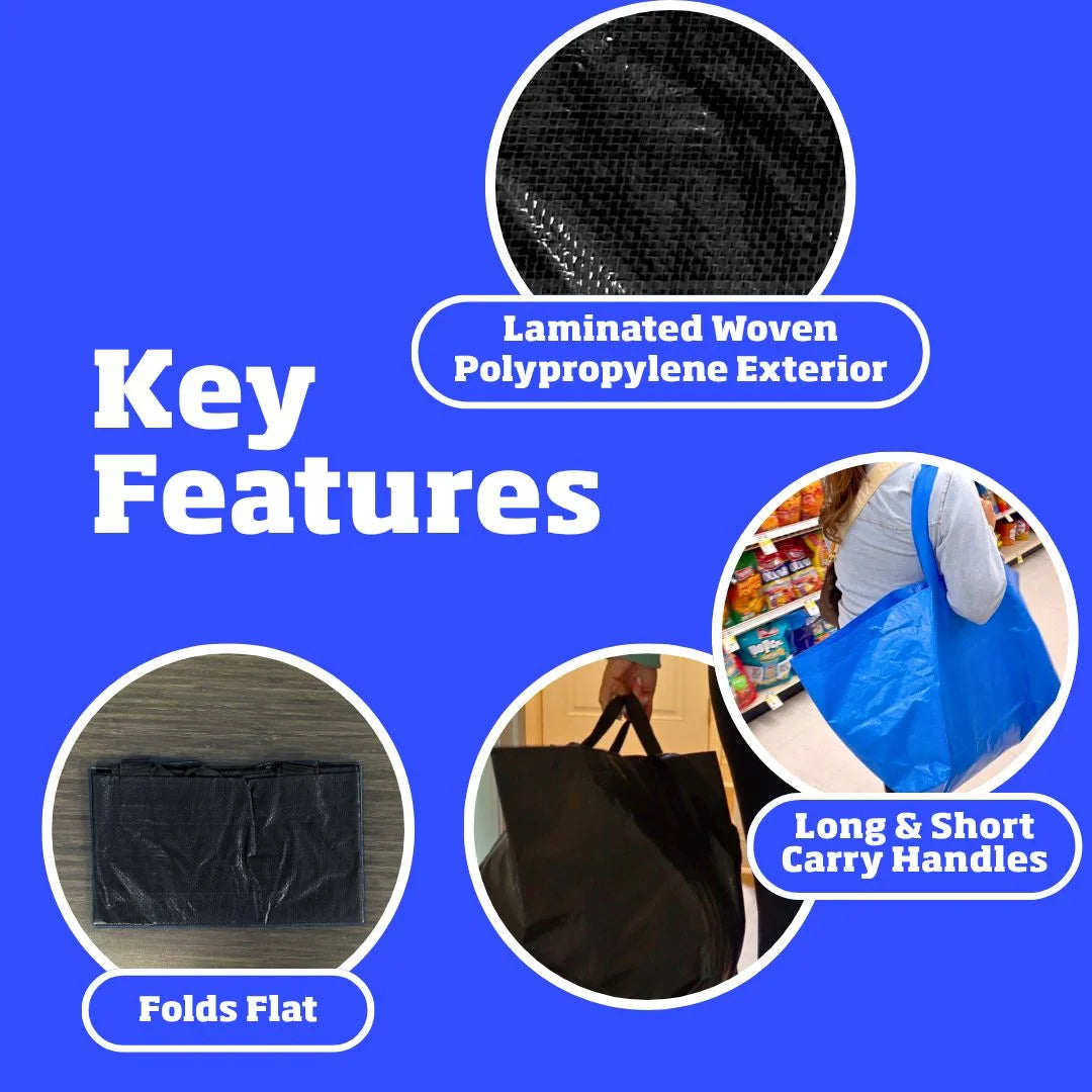 • Ultra-Durable & Heavy-Duty: Built from thick, tear-resistant polypropylene, this reusable tote handles up to 55 lbs of weight—perfect for moving, shopping, or heavy laundry loads.