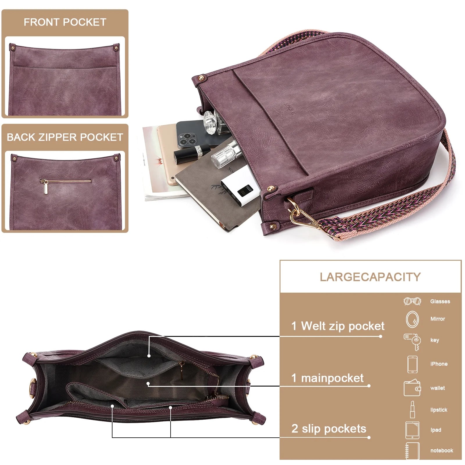 Herringbone pattern+colorful 2-inch double shoulder strap retro single shoulder crossbody bag for women 2 shoulder straps - purple.This crossbody bag for women is made of premium vegan leather, fabric lining and high quality gold hardware designed.come with metal zipper closure,main pocket and back pocket anti-theft zipper design.double antitheft to protect your property safety.also without any weird smell.leather is durable and easy to clean.simply just wipe with water to keep this bucket bag looking new,and durability.Best gifts for girlfriend, wife, mother, and friend.Available multiple retro colors, this lovely bag will become your new favorite accessory!Simple design, Hobo style, You deserve it!