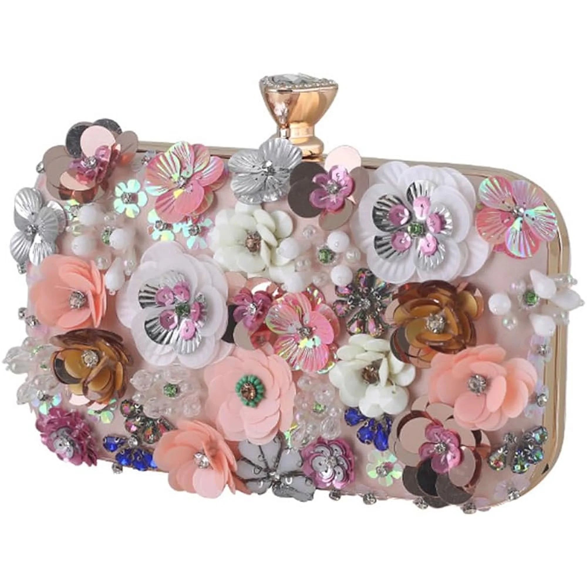 Elegant Appearance: elegance, gorgeous, noble and mature style. Beautiful three-dimensional flower decoration, exquisite beaded clutch purses, adding highlights to your various beautiful formal dresses.High Quality: The beaded petals on the bag are sewn very firmly with thread, and the flowers are not easily scattered, resulting in a long service life.Various Ways Of Wearing:This purse With one gold metal Wristlet Handle and one detachable metal chain-strap , it can be as evening clutch, Top-hand bag, shoulder cross body bags.Size: 8 * 5.9 * 1.9 inches, this evening handbag can accommodate items such as mobile phones, tissues, lipsticks, car keys, small mirrors, etc.Occasion: Beautiful Elegant flower clutch handbag is perfect for wedding, evening party, prom, cocktail variant parties or formal occasions and so on.