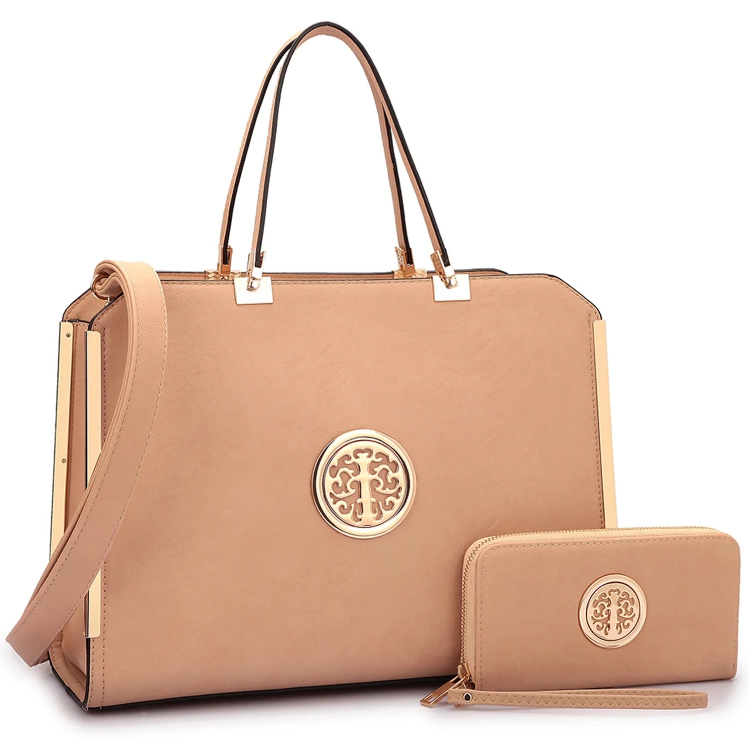 Dasein Women Large Satchel Handbag Shoulder Purse top Handle Work Bag Tote with Matching Wallet